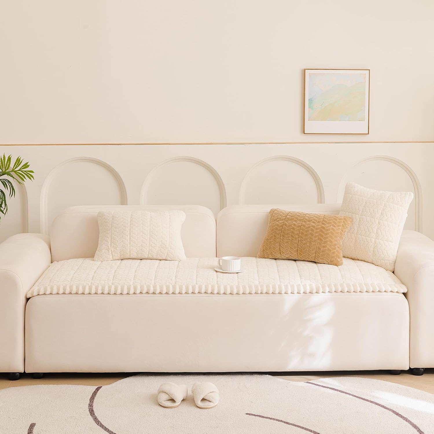 Mivnue Pet Couch Cover Protector Sofa Covers for Pets Washable Non Slip Couches and Sofas Dog Mat (Cream, 27.6" x 59.1")