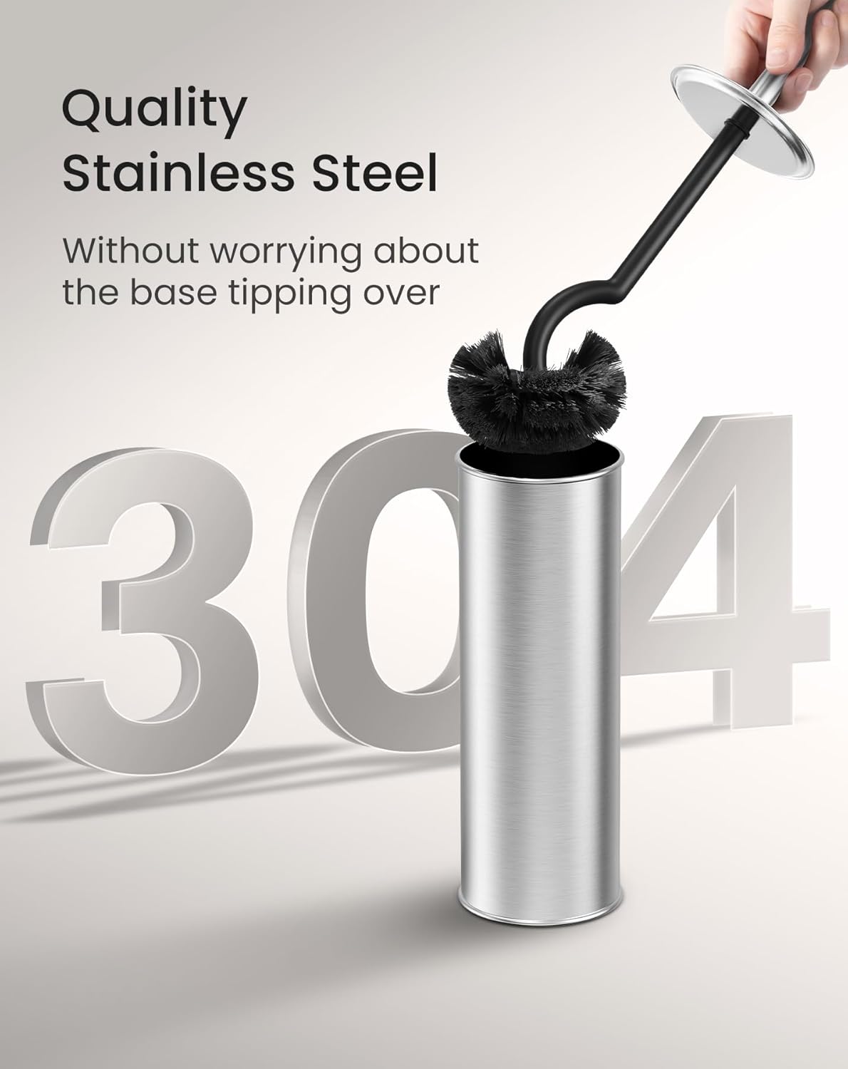 - 304 Stainless Steel Construction: Crafted from quality 304 stainless steel, this toilet brush holder set is rust-resistant and built to last. The robust construction ensures durability, while the matte surface is easy to clean, preventing stains. This toilet brush’s matte finish is designed to maintain its pristine look for years, making it a reliable choice for maintaining bathroom hygiene