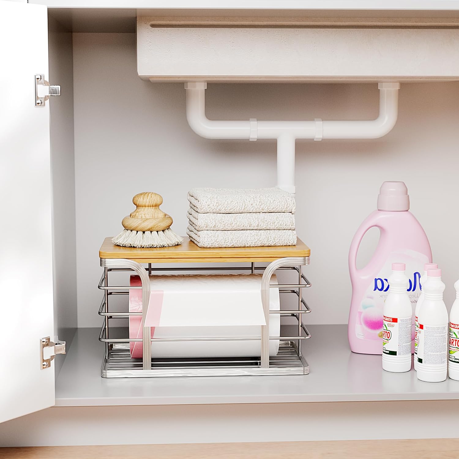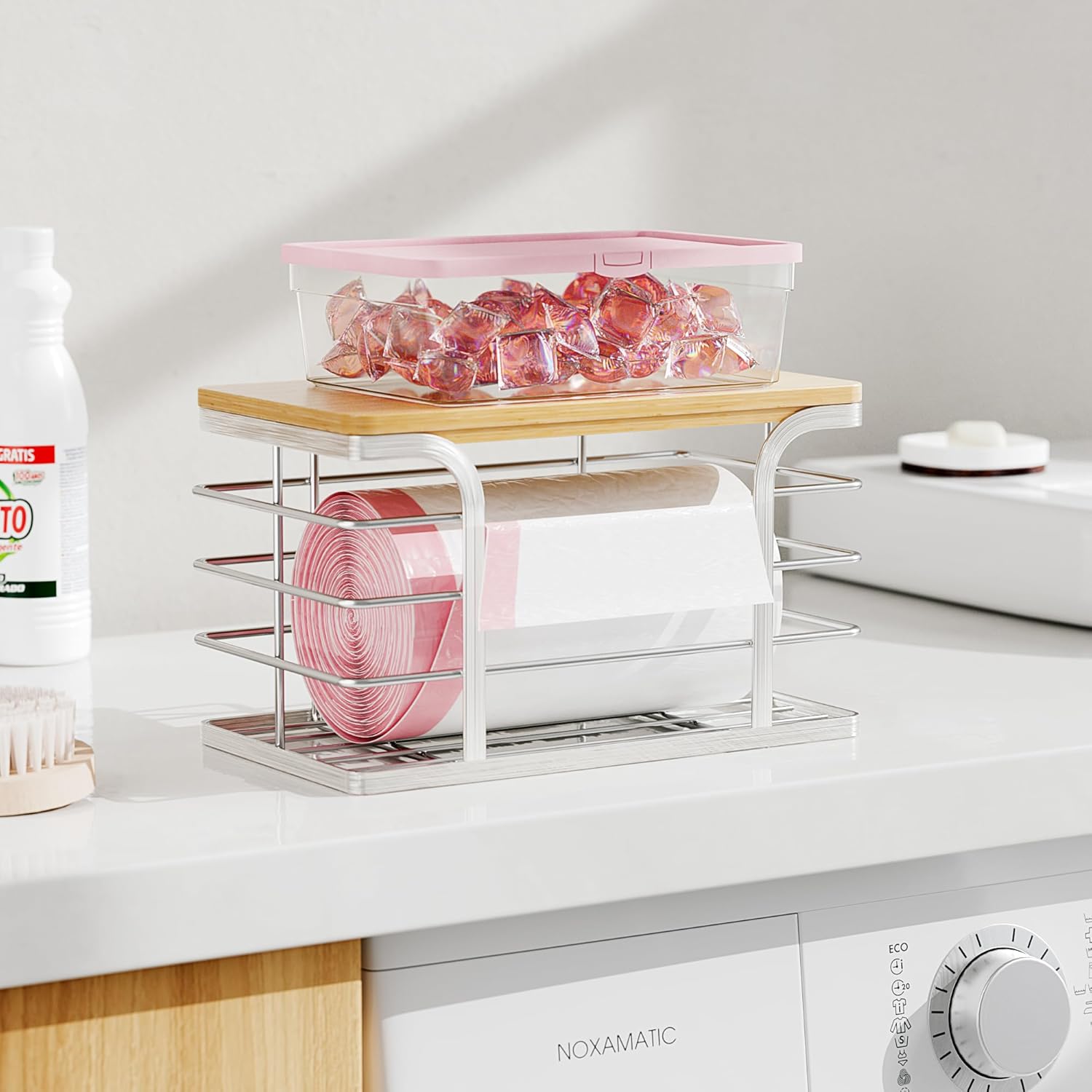 - Space Saving:The spacious front opening allows easy access. The bamboo top maximizes vertical space, fitting neatly on countertops, in cabinets, or under sinks. A great addition to your laundry room organizer setup