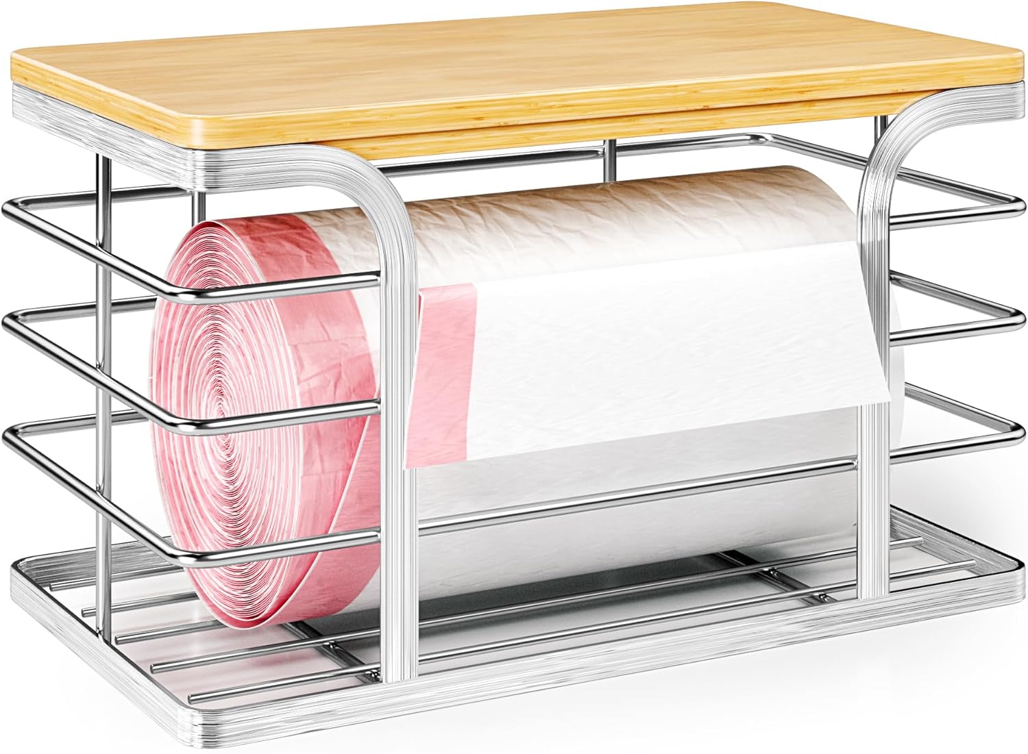 - Premium Materials:Our trash bag holder features a natural bamboo top & 304 stainless steel basket. It's not only good-looking but also waterproof, rustproof, and super durable, making it an excellent choice as a reliable garbage bag holder. Ideal for long-term trash bag storage dispenser use