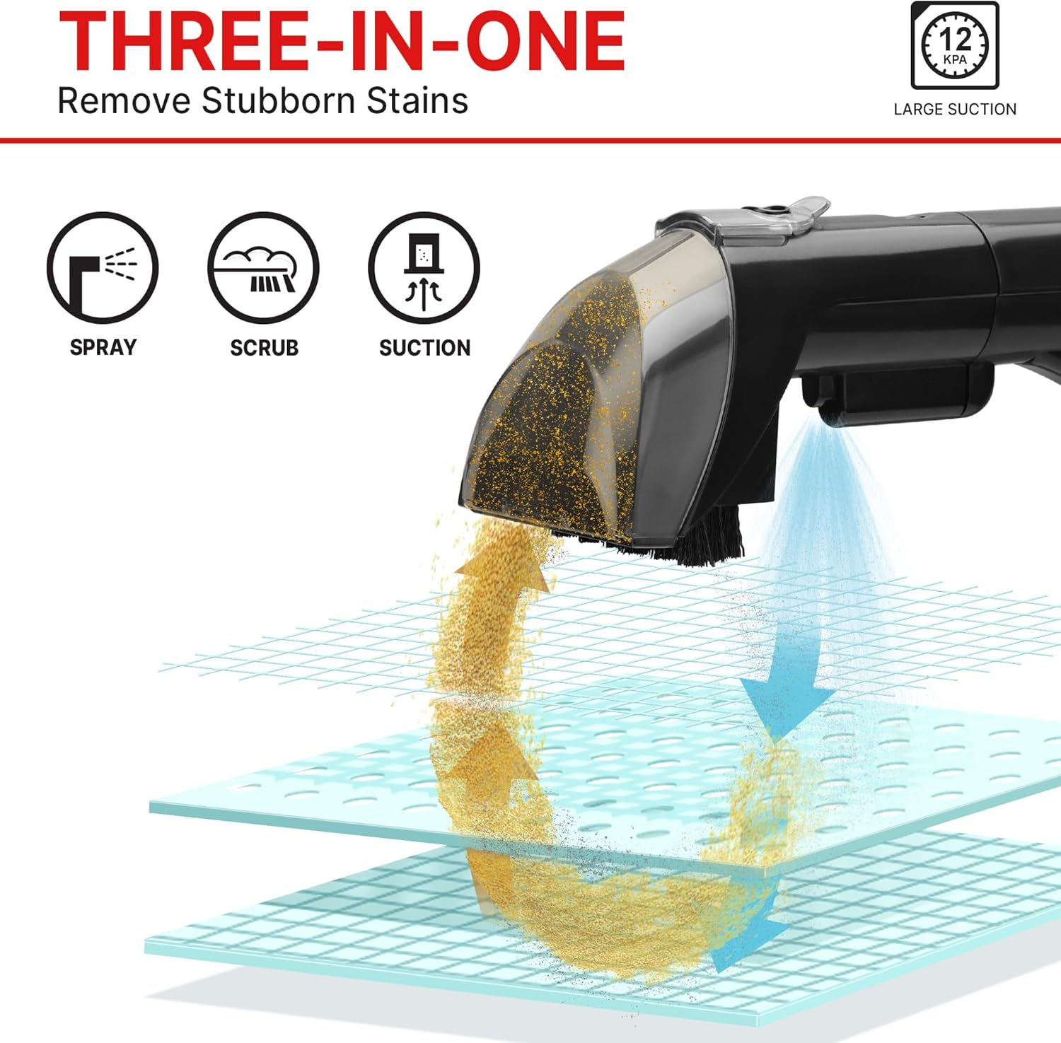 - Superior Suction Power: With 12 kpa high suction power, Shop-Vac Carpet Cleaner Machine can easily tackle deep stains. The simple three-in-one function of spraying, brushing, and suction helps you remove blots effortlessly.