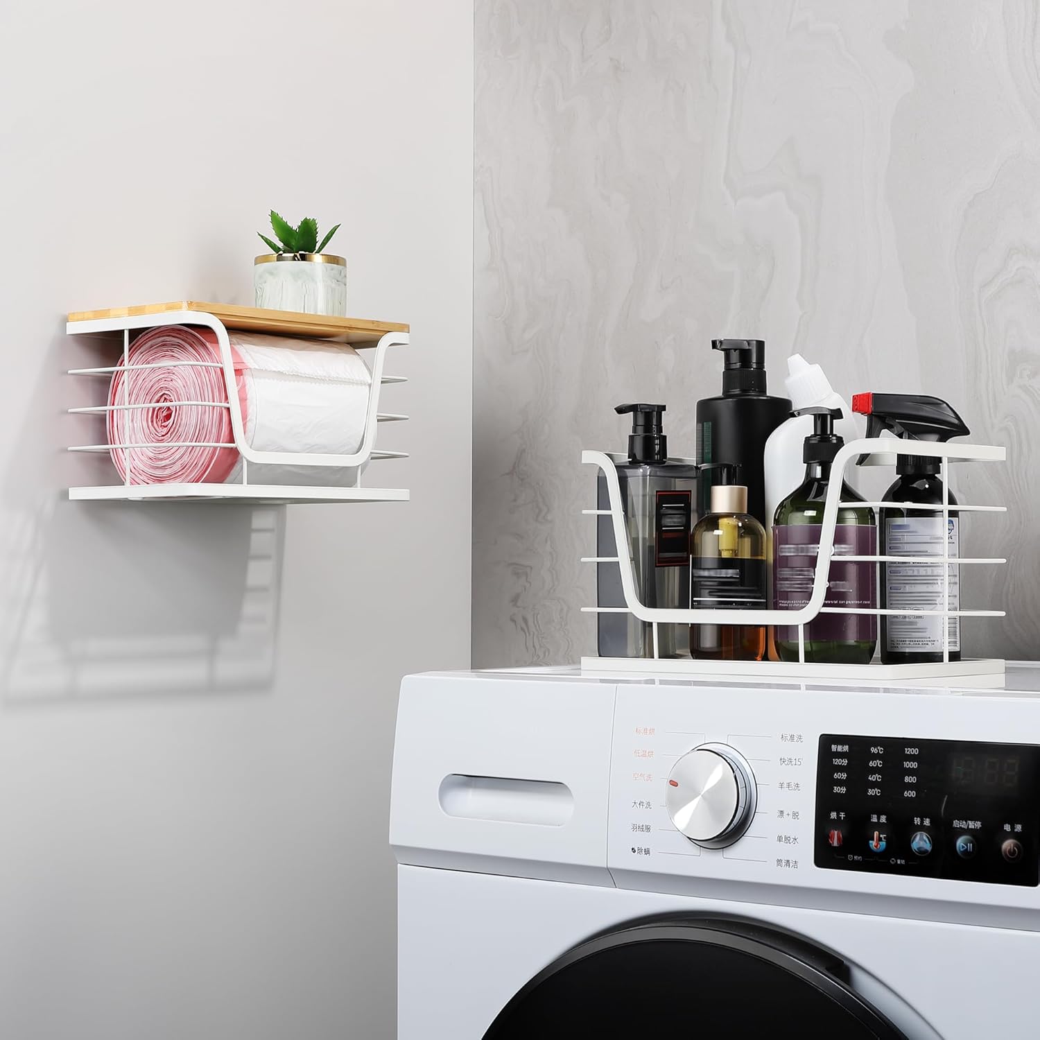 - Multiple Uses: White appearance is suitable for modern decoration. Can be used to organize kitchens, closets, bathrooms, laundry rooms, cleaning supplies and offices. Comes with an adhesive hook, can also be used for hanging