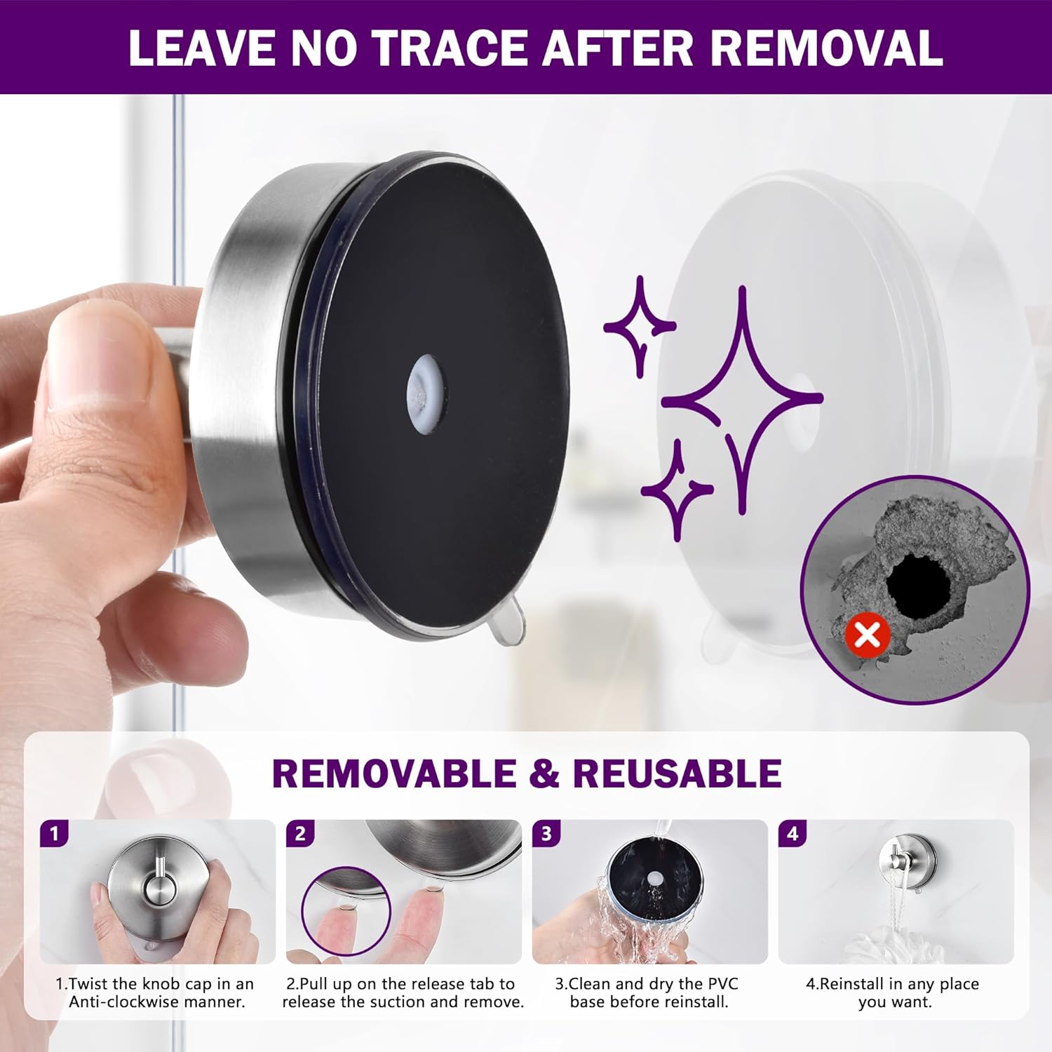 - 3. Zero-Residue, Tool-Free Installation: Simply press, twist, and secure in seconds! The patented adhesive layer creates an airtight seal without leaving marks or sticky residues. Ideal for renters, dorm rooms, or temporary setupsβremove and reposition freely while preserving wall integrity.