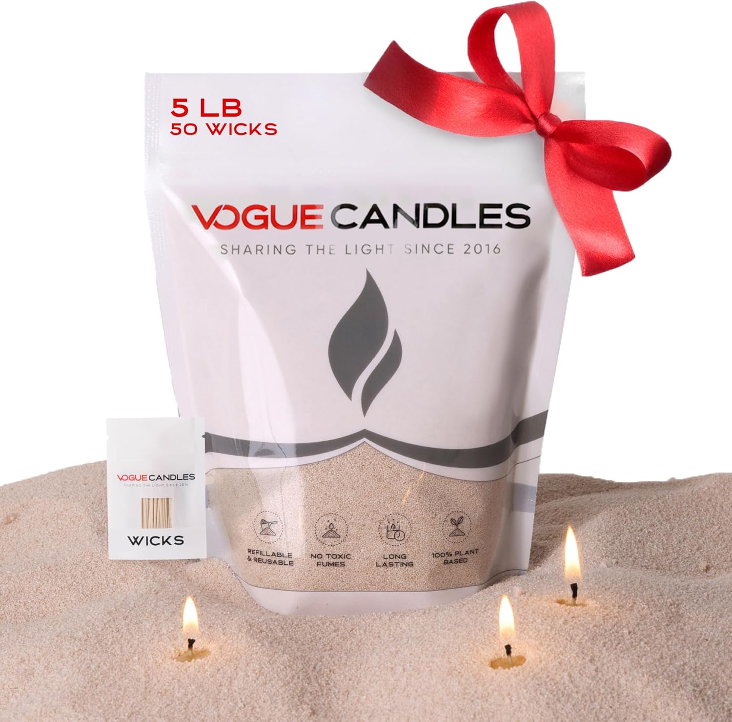 Vogue Candles 5LB Candle Sand with 50 Wicks | Bulk Refillable Plant-Based Granules for Custom Candle Making | Unscented, Clean Burn, Smoke-Free, Vegan Candle Refill Kit- Nude