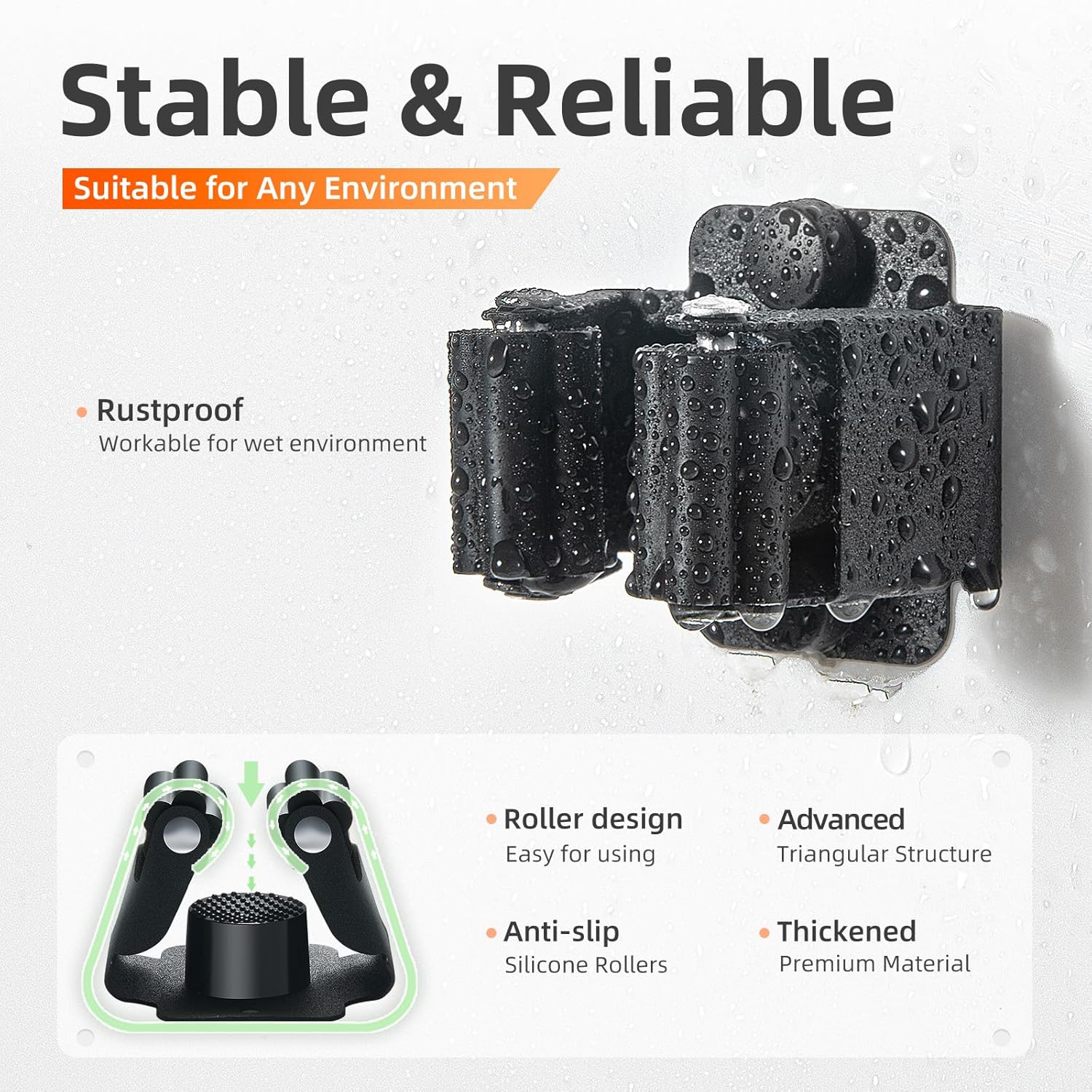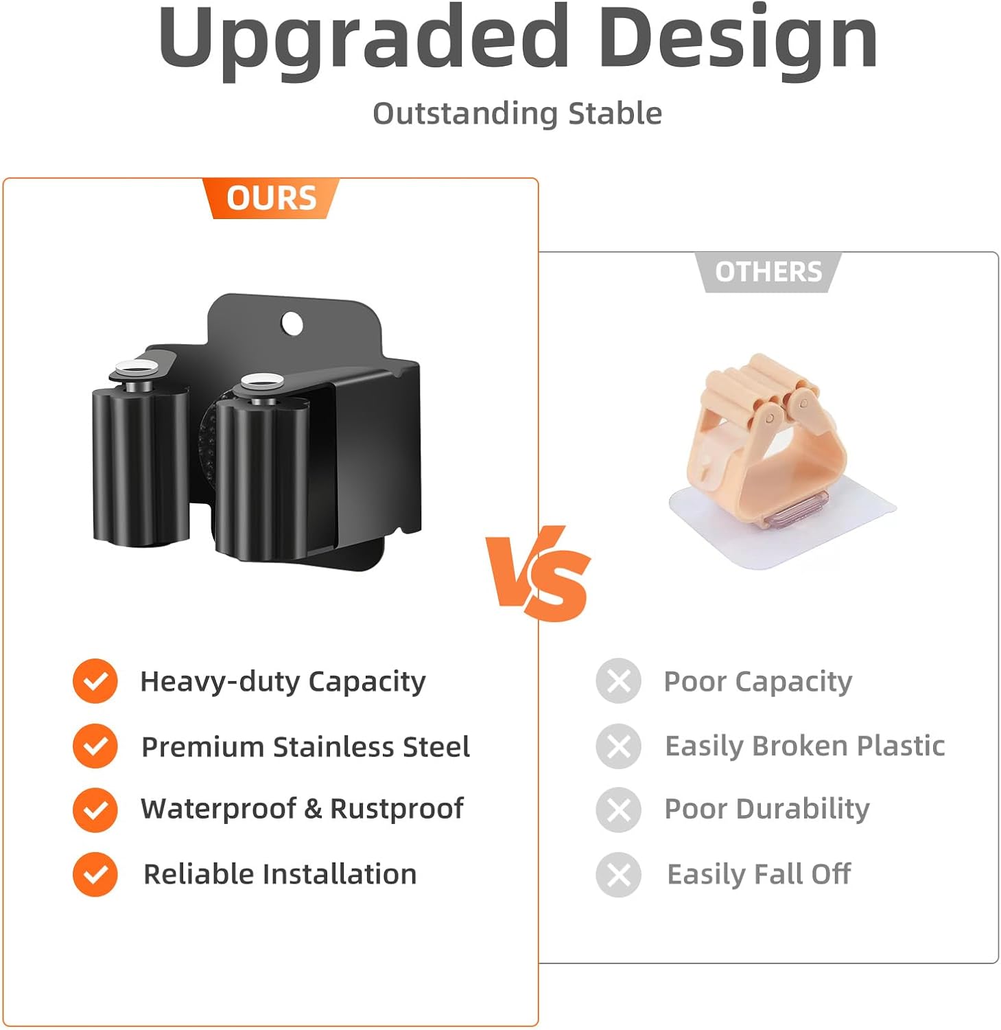 - Premium Material: Made from high-quality stainless steel, our mop holder is rustproof and waterproof, ensuring long-term use even in humid spaces, sturdier than plastic and resists deformation, which can keep tools organized for years, outstanding stable