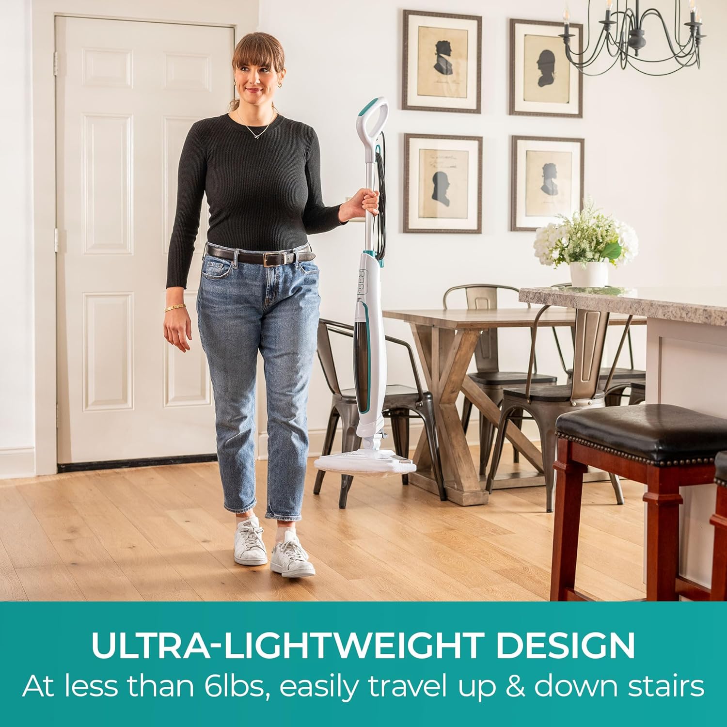 - Lightweight & Maneuverable: Effortlessly glide around corners, tight spaces, and even under furniture with swivel steering
