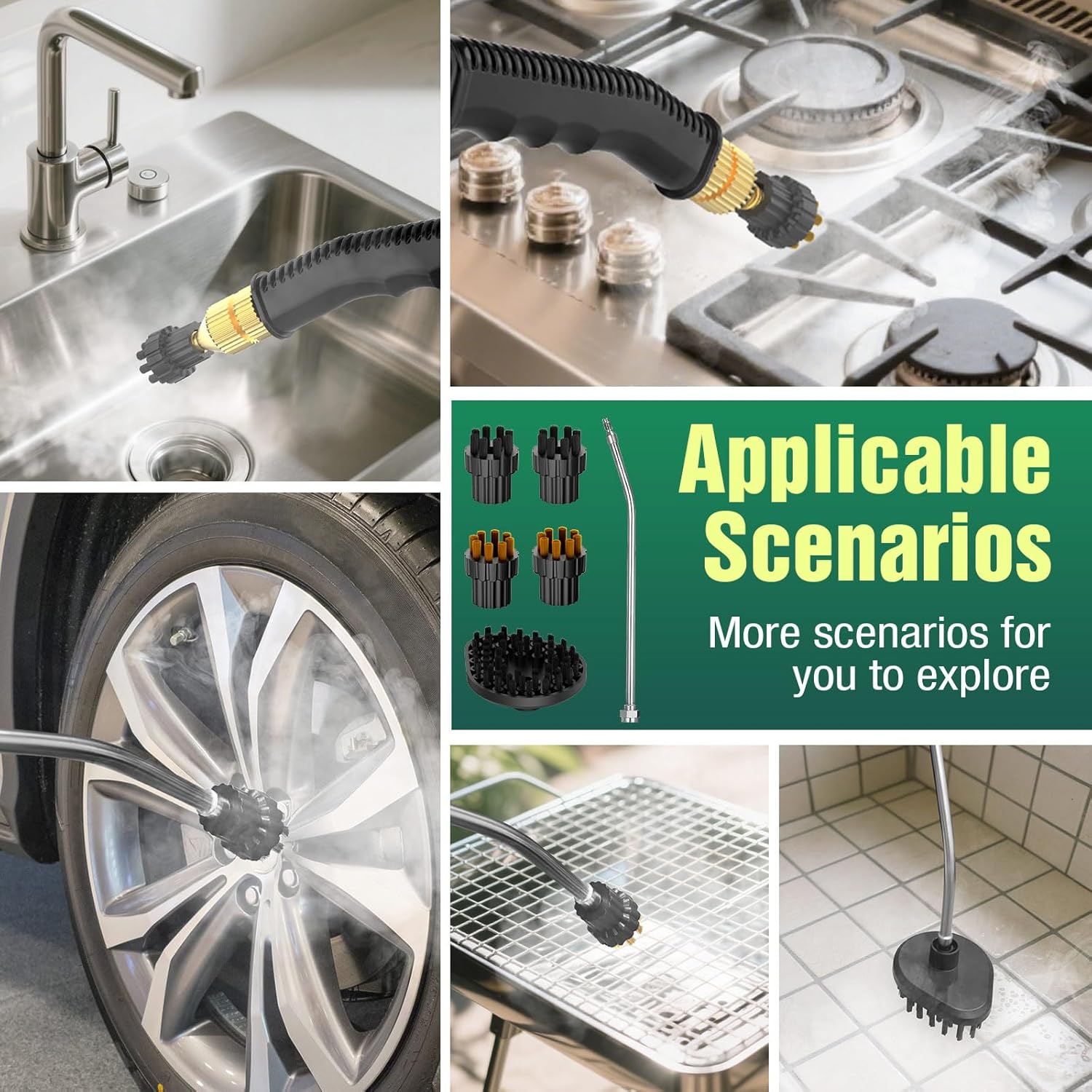 - Multi-surface deep cleaning:Handheld steam cleaner can safely clean floors (tile, hardwood, laminate), carpets, upholstery, windows, kitchen appliances, bathrooms, and more with just water vapor!