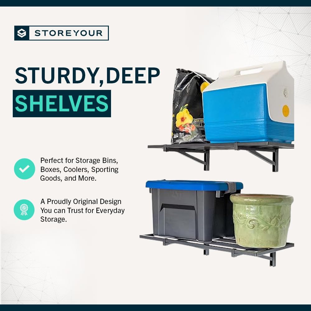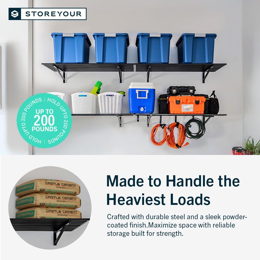 - HEAVY-DUTY STORAGE SHELVES – This 2-pack of wall-mounted garage shelves offers dependable, space-saving storage for any setup. Available in a range of sizes to suit your space, each shelf supports up to 200 lbs—ideal for storing bins, tools, tires, and gear. A solid pick for maximizing wall shelves in your garage, shed, or utility room.