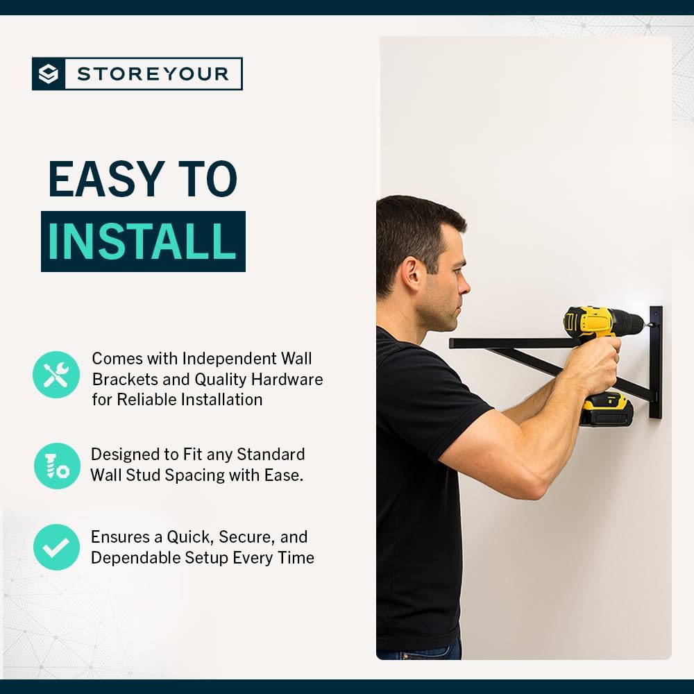 - EASY INSTALLATION HARDWARE INCLUDED – Designed for fast setup with wall brackets and heavy-duty hardware that works with standard wall stud spacing. Perfect for anyone setting up wall shelving in garages, sheds, laundry rooms, or closets. No guesswork—just a secure wall shelf system that’s built to last.