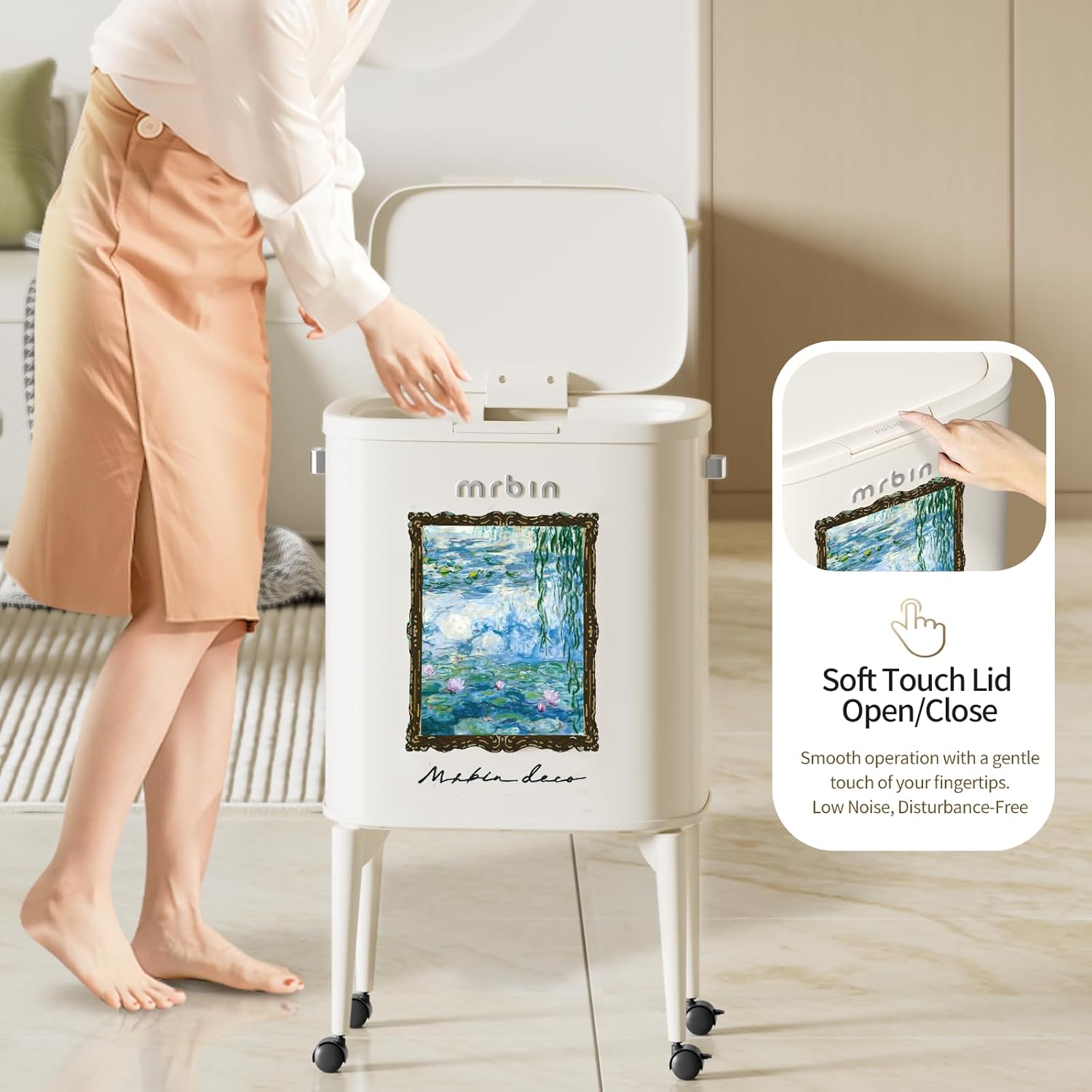 - Artistic Aesthetic in Decor: This decorative trash can features a classic water lily pattern, embodying a sophisticated touch with art-framed paint ornaments. It reflects a taste for art and attitude in home decoration, blending seamlessly into any room's aesthetic.