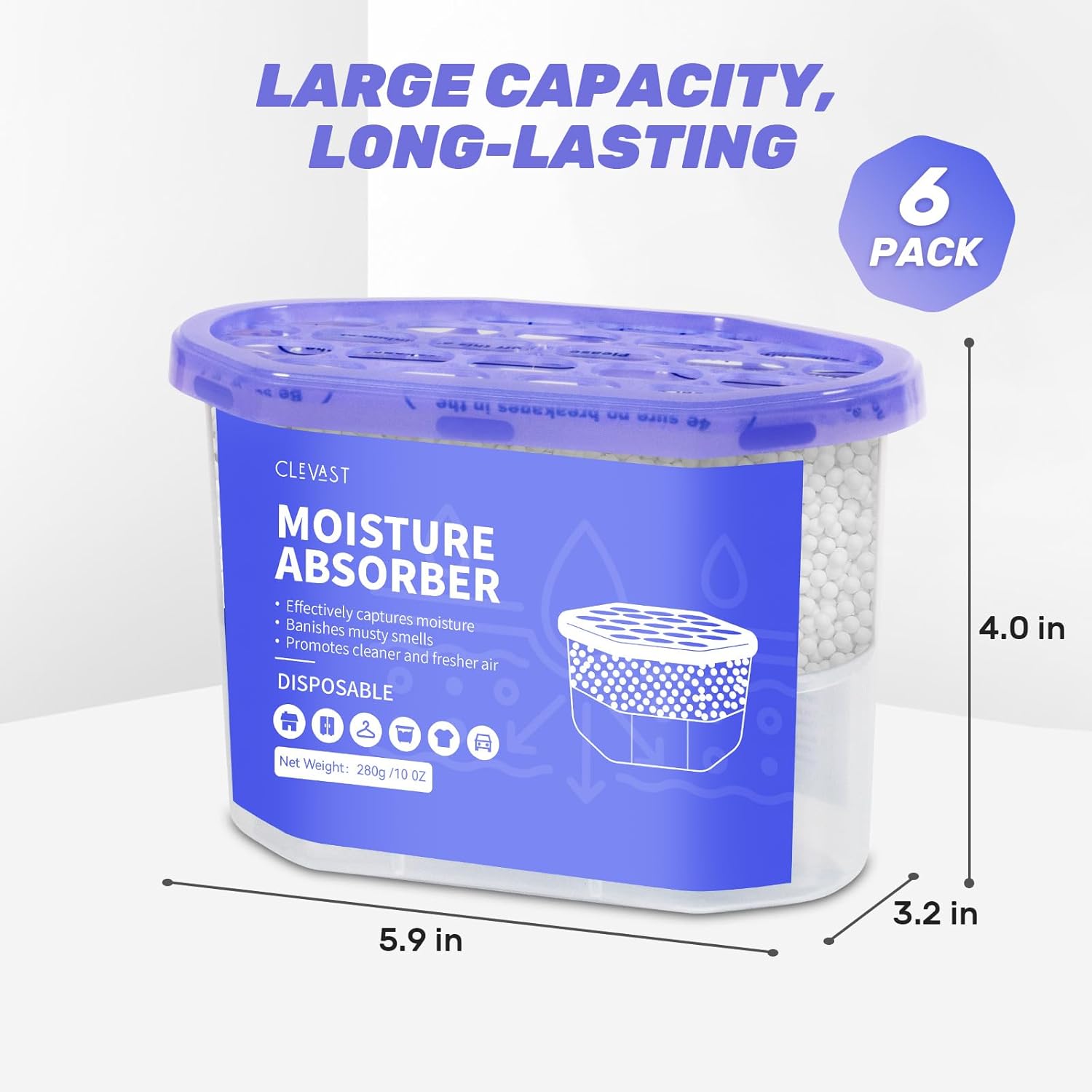 - EFFECTIVE DEHUMIDIFICATION: The CLEVAST dehumidifier boxes feature spherical calcium chloride particles that can attract and absorb excess moisture quickly and efficiently. Moisture absorbers are designed with premium one-way moisture-permeable paper that will securely lock the moisture inside.