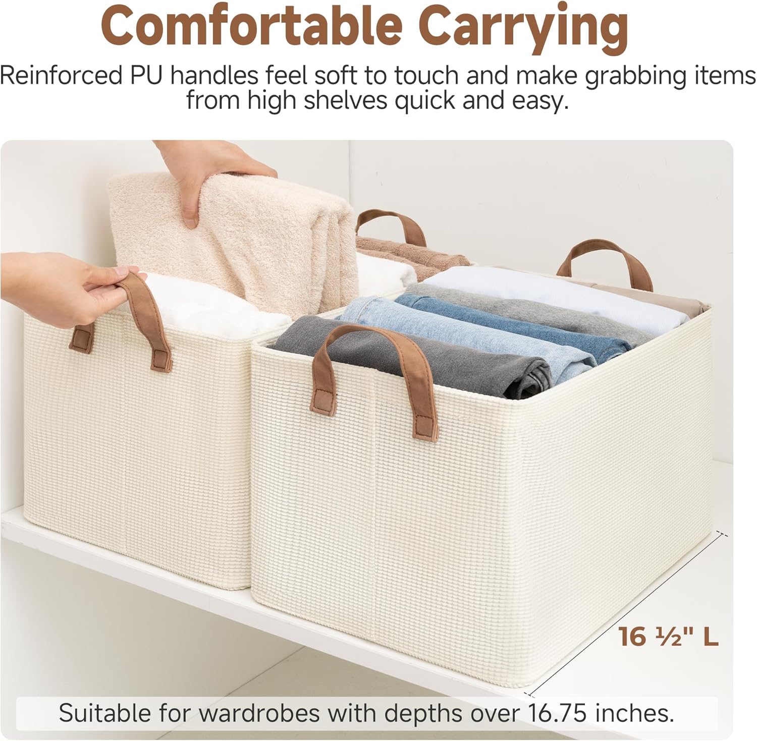 - Handle with Ease: With the 2 PU handles securely riveted to the sides of the storage bin, you can easily carry items without tearing the handles.