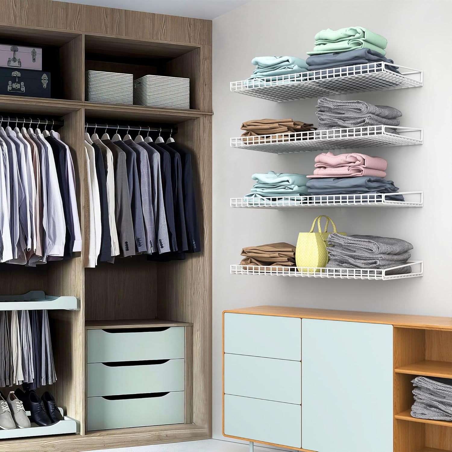 - Space Optimization: Maximize your garage space with these sturdy wall shelves, offering an efficient storage solution. Organize tools, equipment, and more, freeing up valuable floor space for your vehicles or other activities