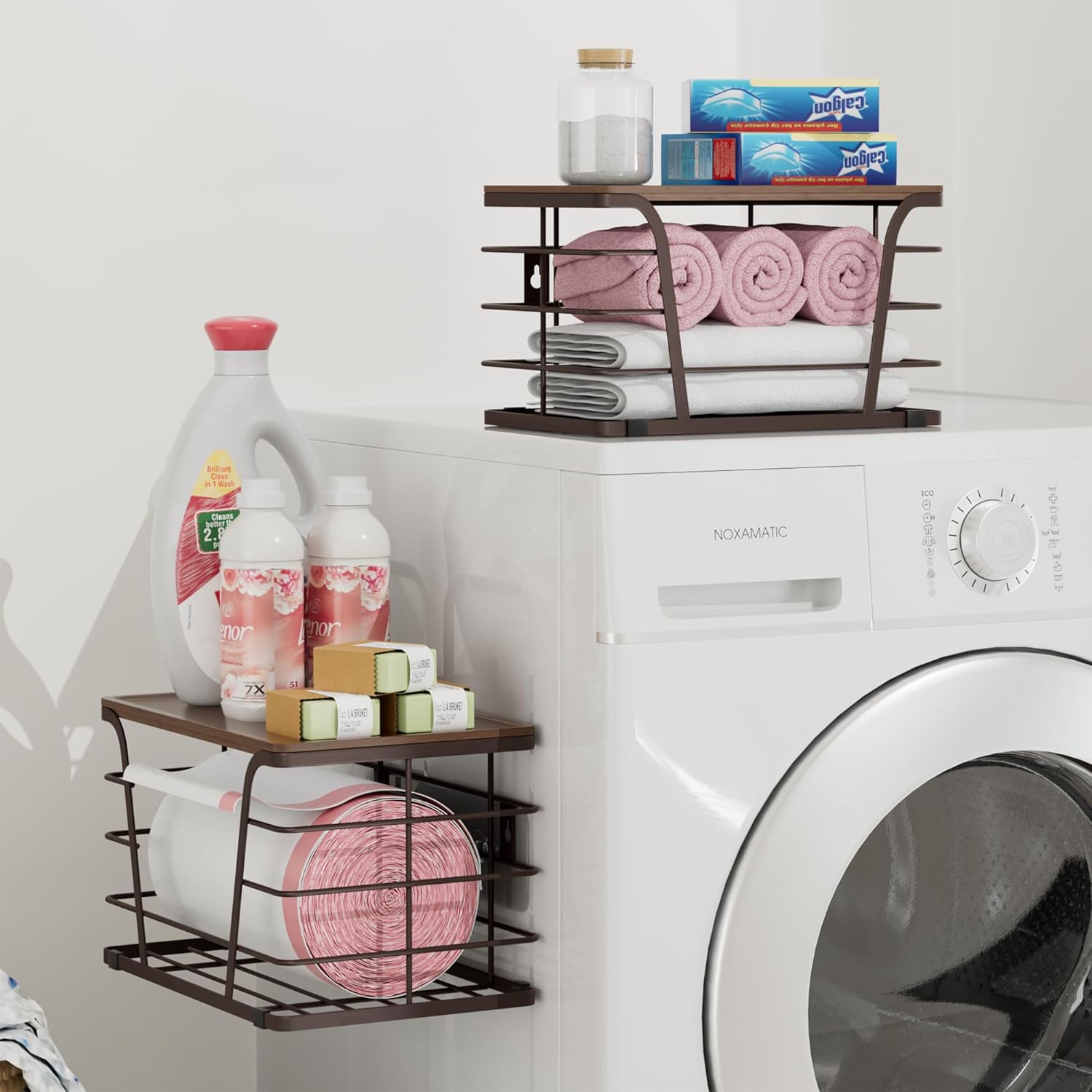 - Versatile Use for Home Organization:From pantry organization to laundry room storage. Assign the large garbage bag dispenser under sinks, use the small wall basket for kitchen sink accessories, or mount both as bathroom organizers