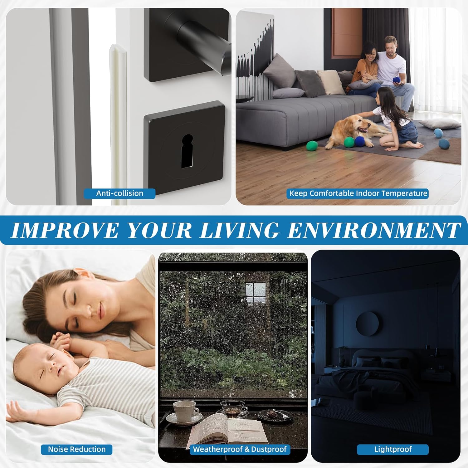 - Multi-Purpose Design: This window insulation is the perfect solution for sealing gaps around doors and windows with ease. Whether itβs winter or summer, our door weatherstripping acts as a reliable barrier to lock in hot or cold airβboosting heating and cooling efficiency while cutting down on energy bills. Whatβs more, it effectively blocks out noise, light, rain, dust, wind, leaves, snow, and odors, and even keeps unwanted pests from sneaking in.