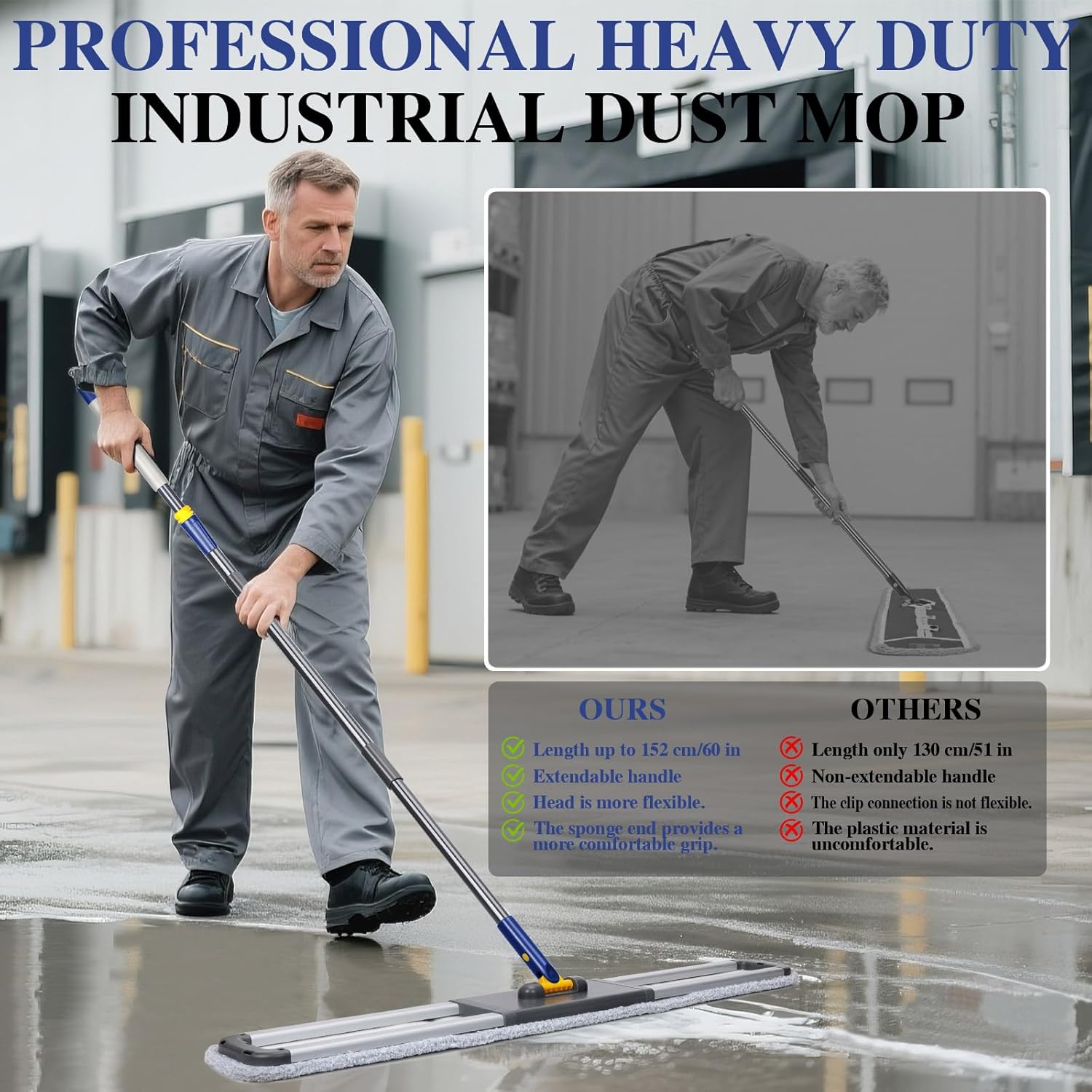 - Lightweight and Flexible: The aluminum wet mop base is durable yet significantly lighter, making cleaning easier. The dust mop head can rotate 360°, making it easy to clean under beds, tables, cabinets, crevices, and any other hard-to-reach areas. The lightweight and flexible wide mop saves time and effort.