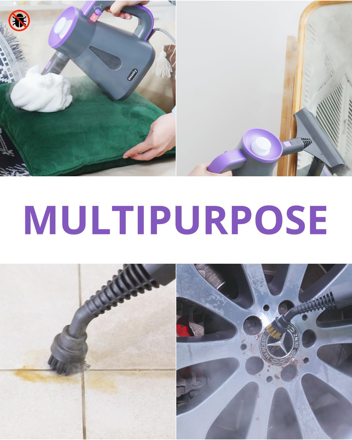 - [Efficient Operation]: Generates steam in just 10 seconds and The water tank remains non-pressurized and unheated during operation, allowing for immediate refills without waiting for the unit to cool down. Enjoy uninterrupted cleaning sessions—refill anytime safely and conveniently, saving time and effort. It is the ideal choice for cleaning sofa, mattress, spot detail, fabric surface, kitchen, bathroom, bed, window, curtain, shower, oven, stove, grill, and removing wallpaper from wall.