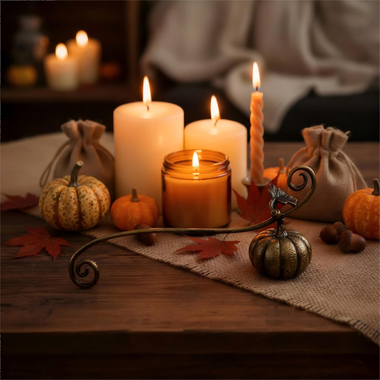 - [Unique Pumpkin Design]This candle snuffer features a charming pumpkin shape with a delicate vine-style handle.It?s not just a tool?it?s a decorative piece that adds a whimsical touch to candlelit dinners, spa nights, or cozy evenings