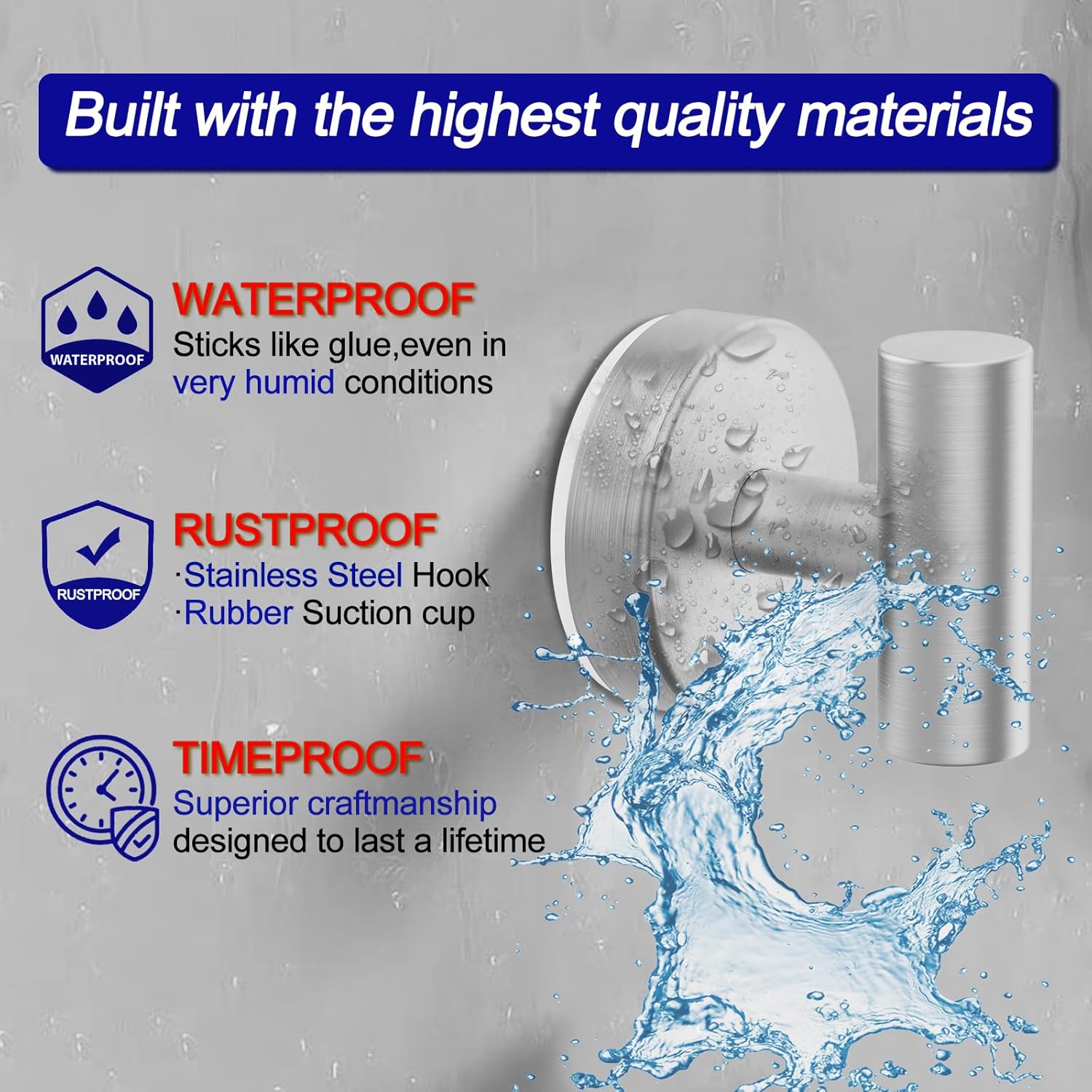 - [Shower-Safe & Rustproof]: Stainless steel shower hooks + super silicone suction base withstand daily steam/water splashes. Removable without residue - ideal for renters' towel hook needs.