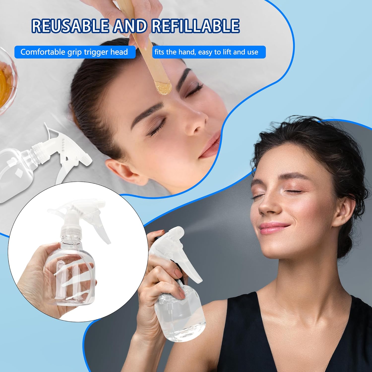 - โ Practical Design: our hair spray bottles are well sealed, preventing the liquid from leaking out. The nozzle sprays a fine mist of water, and the transparent design is not only beautiful, but also allows you to clearly see the remaining capacity of the liquid in the bottle, making it convenient for you to replace it in time