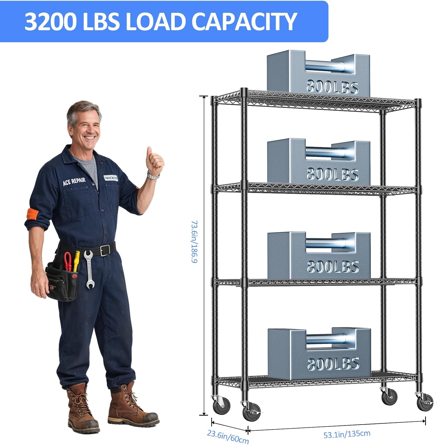 - Size : 4 Tier, 23.6" D x 53.1" W x 73.6" H