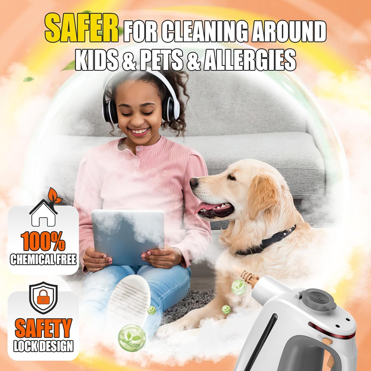 - NATURAL 100% CHEMICAL-FREE & SAFE CLEAN: Embrace a healthier cleaning approach with our deep steam cleaner, which offers a 100% chemical-free cleaning solution; Harnessing the power of steam, without chemicals, making it safe for your family and pets