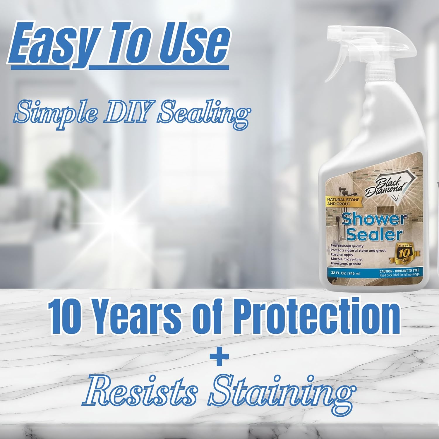 Black Diamond Stoneworks Shower Glass Cleaner Spray & Natural Stone Shower Sealer – 2 Pack Bathroom Bundle for Crystal-Clear Glass and Long-Lasting Stone Protection